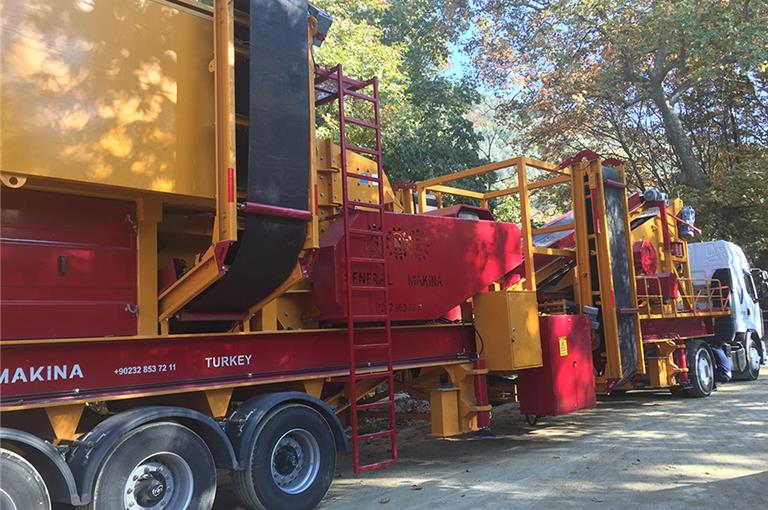 General 03 Yeni Sistem Mobil Kapalı Devre Kırma Eleme Tesisi Tüm sistem tek şase üzerinde toplanmış olup , 1 Tır ile taşınabilir. 30 dakika içinde işletmeye alınabilmesi için dizayn edilmiştir. Klasik konkasör tesislerinden farklı olup yeni teknoloji ve ekipmanlarla üretilir. General 03 yeni nesil olup 35 yıllık tecrübenin eseridir. GENERAL 03 deki Mevcut Makina ve Ekipmanlar; Titreşimli Besleyici ve Haznesi Besleyici Sistemi : Besleyici Ebadı : 1200 x 3750 mm Kırıcı Özellikleri : GNR – 03: Ocaktan çıkan tüvenel Max 1000 mm madeni 2 odalı kırıcı haznesiyle birinci haznede 0.50 ikinci haznede ise 0.25 mm ebadına düşürerek yüksek kapasiteli ürün elde edilmektedir. Yeni Nesil Mobil Kapalı Devre Kırma Eleme Tesisi GENERAL 03 geri dönüş konveyörü ile istenilen ebatda ürün elde edilemektedir. Asfalt ve yol yapımı ve beton santrali besleyen ocaklar için uygundur. 2 Adet Vibromotor ile yüksek titreşim sağlanmaktadır. Bu sayede sorunsuz ve çalışma minimum bakım sunulmaktadır. General 03 Kapalı devre mobil konkasöre besleme Ekskavatör,Loder,Kamyonla yapılabilir.İlave bunker hazneleriyle sorunsuz çalışmayı destekler. Besleyici haznesi Hardox 500 malzemeyle korunmakta olup civata montajlı haliyle kolay değişime uygundur. Besleyici sisteminde by-pass ızgara sistemi vardır. Bu sistem ön elek ihtiyaçını karşılamış olup , elenen topraklı malzeme bu tabladan ayrı bir stok bandıyla stoklanabilir. General 03 Kapalı Devre Mobil Konkasör bilgi ve fiyatları için arayınız ! 0543 3823535